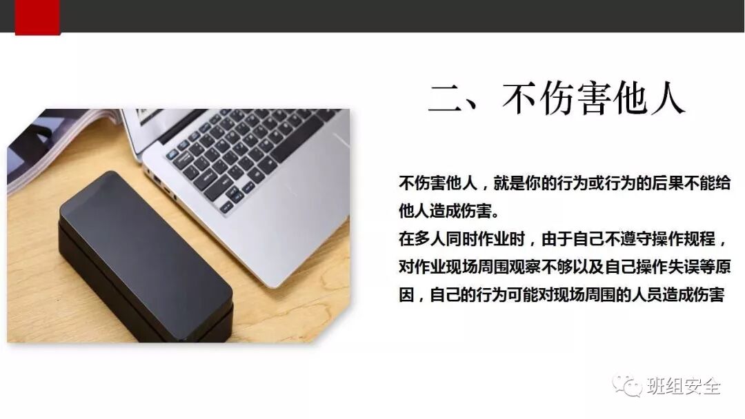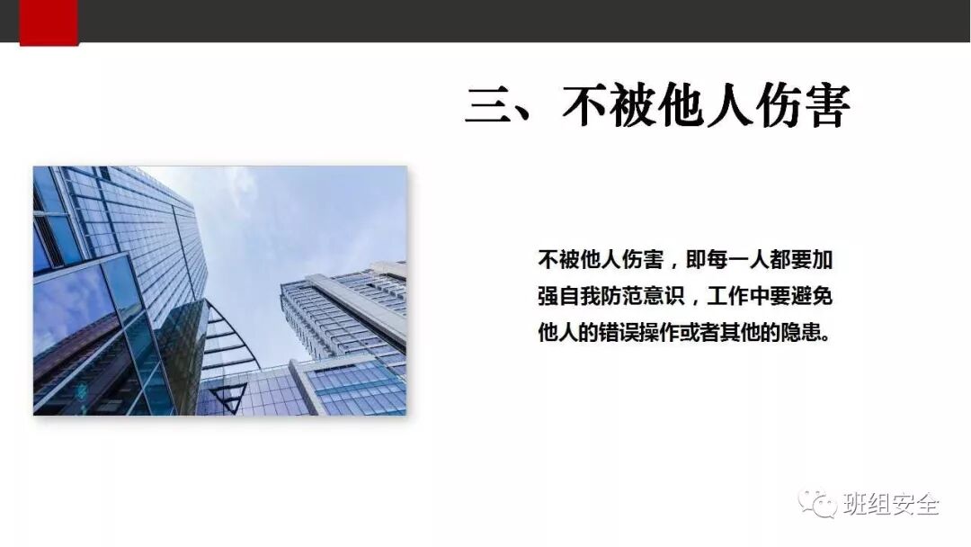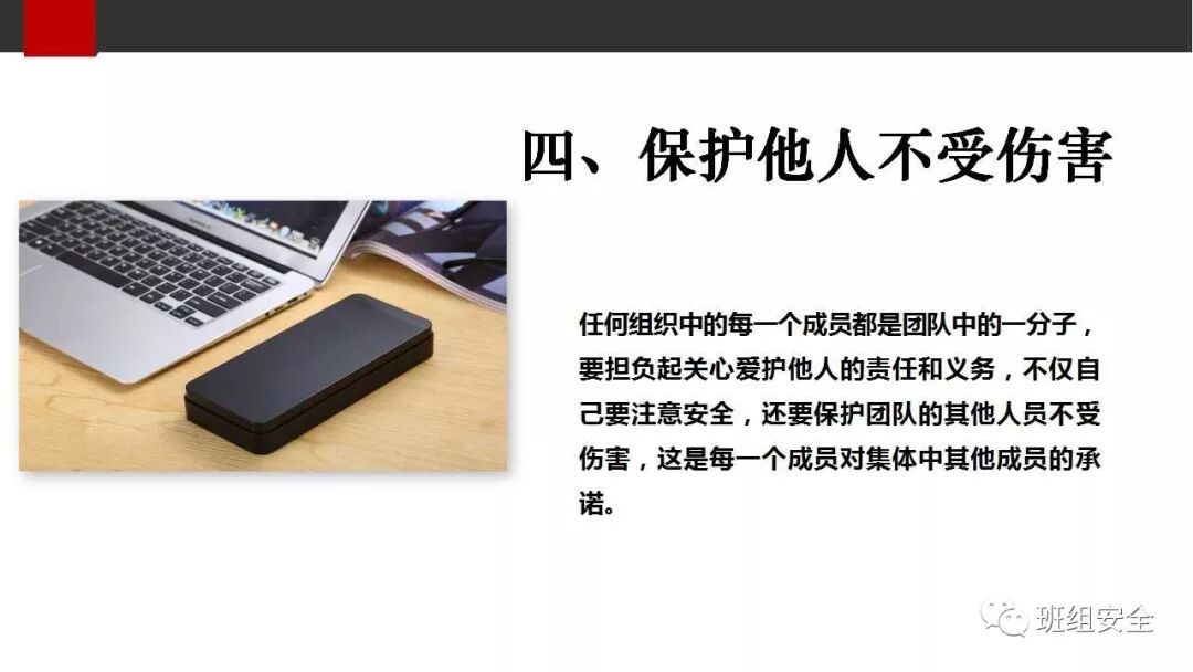 “倡导安全文化、提高全民安全生产意识”是我国安全生产规划中的一项内容,而安全文化的核心思想是人,在倡导“以人为本、构建和谐社会”的今天,“四不伤害”这一安全理念也就自然成为企业安全文化的核心内容,因为要做到“四不伤害”必须围绕人这一主体才能实现。我国安全生产工作经过长期的实践,积累出 “四不伤害”这一宝贵经验,即“不伤害自己、不伤害他人、不被他人伤害、保护他人不受伤害”,听起来似乎平淡无奇,但其中却蕴涵着非常深刻的安全哲理。它突出了以人为本的安全工作核心,是“安全第一、预防为主”这一方针的具体体现;是提高全员安全意识、增强安全理念的生动写照;是搞好安全生产工作必须遵循的一条普遍规律;更是强调自我保护和相互珍重的法宝。